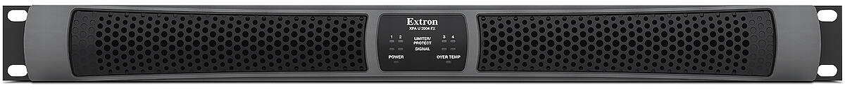 The Extron XPA U 2004 FX is a four-channel, high-performance audio power amplifier that can deliver 200 watts simultaneously into 8 ohm, 4 ohm, 70 volt, and 100 volt loads in multi-zone systems. Rotary switches on the rear panel make it quick and easy to independently select an output mode per channel to power each zone. This highly Ecofficient Level 2 amplifier features InstaWake+™, the ability to return to full power from standby in under 5 milliseconds. For maximum flexibility, the total power of two adjacent 200 watt channels is shared, delivering up to 400 watts per single channel, according to system requirements. The fan-cooled enclosure does not require adjacent empty rack spaces for ventilation and includes front and rear rack mount hardware for stability.