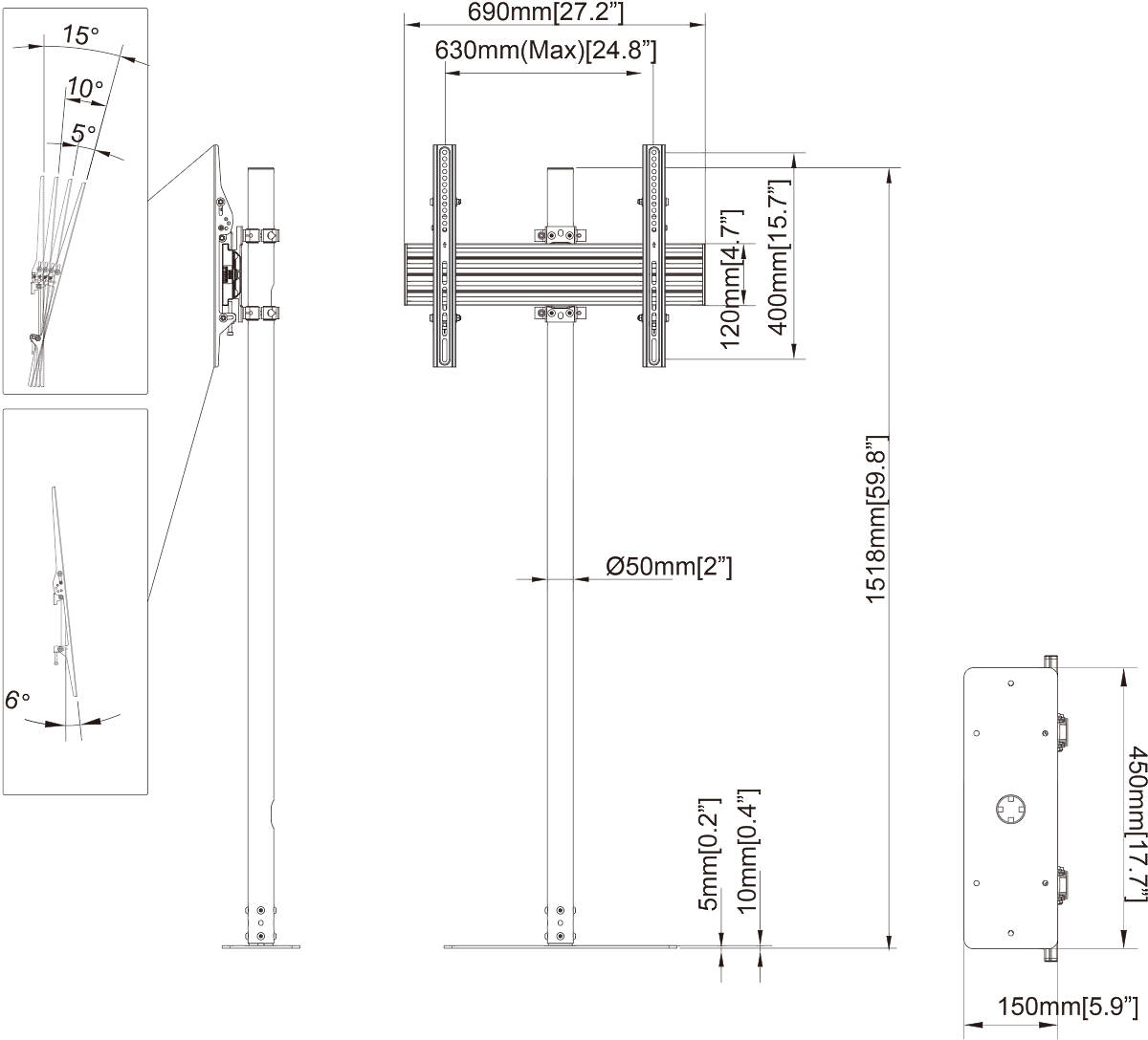 | Bracket Tilt | -6°~+15° |