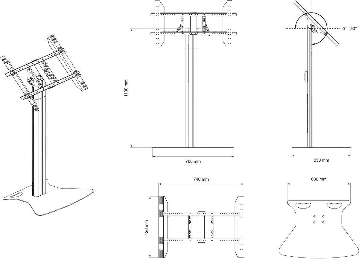 The M Public Display Stand 110 Tilt & Table Floorbase accommodates screens up to 55″ or Max Load 90KG and is an excellent choice for touchscreens. Built to last with a light but robust frame, fast assembly and disassembly, and suitable for most environments.