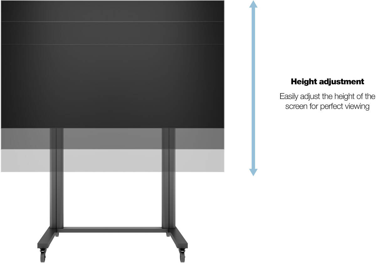 Compatible with VESA of, 200×200 to 1700×1200, the “Multibrackets 3439 M Public Display Stand 210 Dual Pillar 150kg MAX Wheelbase” is a perfect match for that large screen display in boardrooms, training rooms, lobbies, classrooms, auditoriums, or exhibition halls.