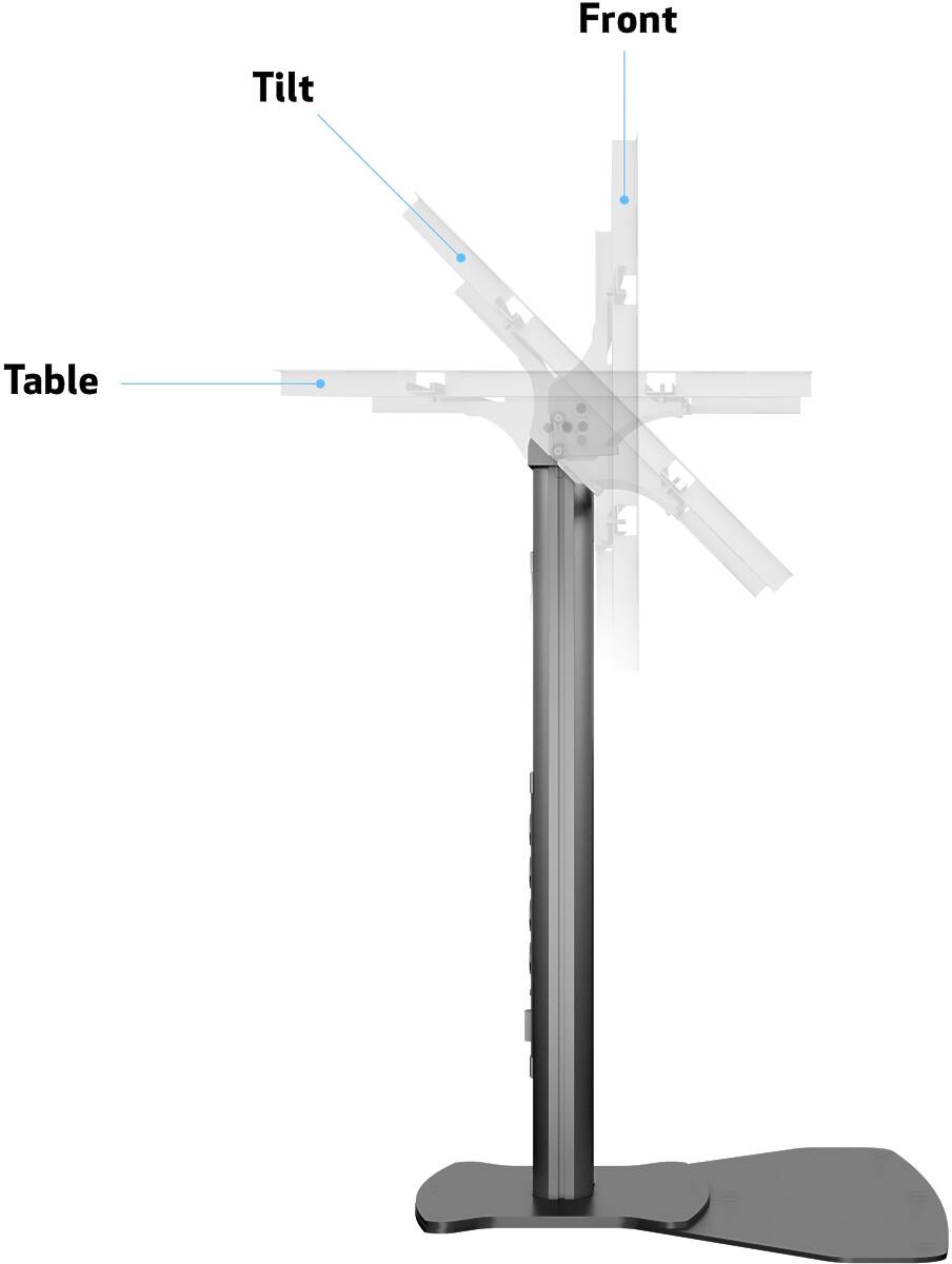 Place your new touchscreen as a table. Present your projects with the display tilted toward any viewer. Use the stand as a presenter for a product or interactive presenter. Make your presentations more interactive by providing new flexibility for a display or touch displays. With its simple-to-use tilt function, and easy movable transport, makes this the ideal solution for educational sector, TV studios and just about any company.