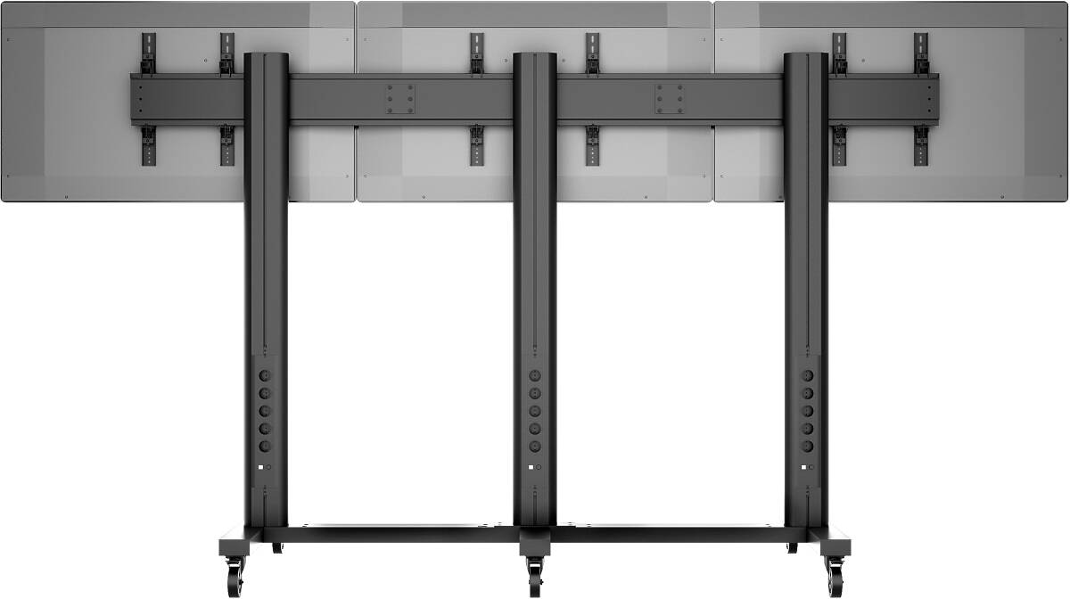 The Multibrackets M Public Video Wall Stand 3-Screens is a flexible and robust floor-standing solution designed to create impactful video walls with up to three LCD displays. Ideal for digital signage, videoconferencing, trade shows, or corporate presentations, this stand supports screens sized 40–55″ with a mounting interface from 200×200–800×400 mm.