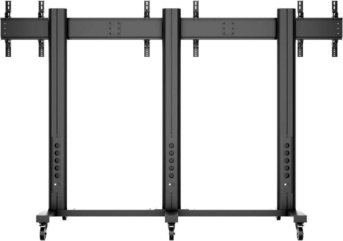 Constructed from durable aluminum with a 180cm high pillar, it offers excellent height adjustment options to optimize viewing angles for both seated and standing audiences. The integrated 220V power rail within each pillar simplifies cable management and power supply to all connected screens and peripherals. This mobility and modularity allow easy repositioning for temporary or permanent installations, with an optional floor mount base available for fixed setups.