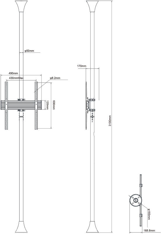 - Single-screen floor-to-ceiling mount for digital signage applications