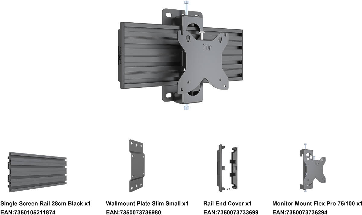 Part of the Multibrackets Pro Series, this model combines Scandinavian design aesthetics with installer-friendly features. Built on a modular aluminum rail system, the MBW1U Tilt 75/100 offers integrated cable management and allows for rapid installation with a clean, professional result. It's optimized for environments requiring compact screen mounting with adjustable tilt functionality.