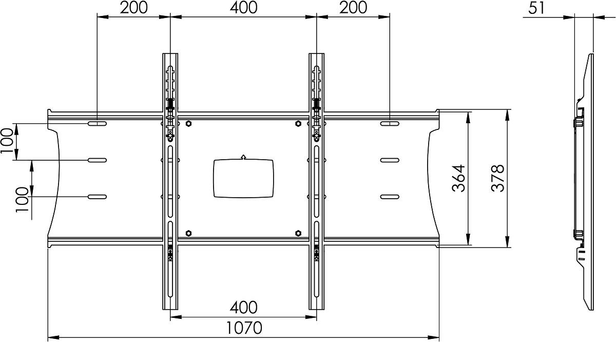 Designed to fit VESA measurements 300×300, 400×300, 500×300, 400×400, 600×300, 500×400, 400×600, 600×400, 800×400, 1000×400, 800×600 and 1000×600.