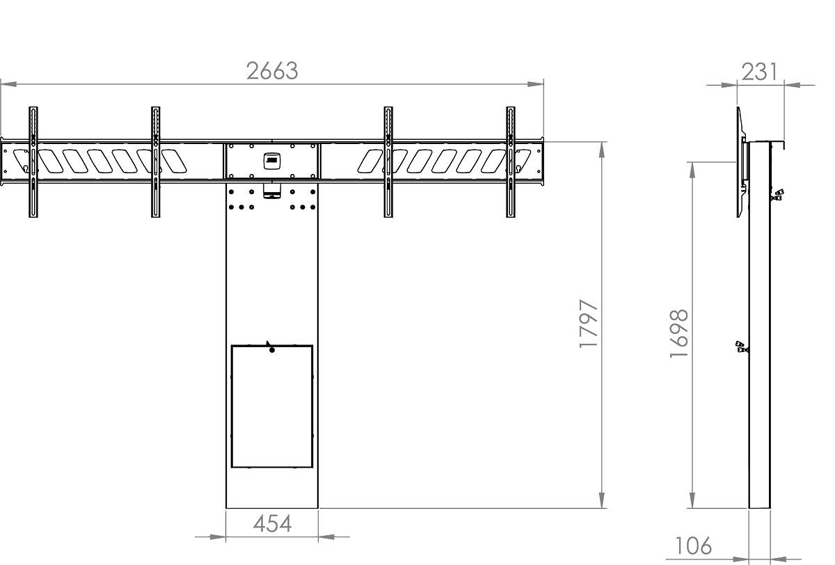 The Unicol RFWSH-HD200 features a compact footprint and wall tie to provide a sturdy fixed position installation for two large monitors or touchscreens side by side. This stand features a mast height of 1800mm and height from floor to centre of screen is approx. 1600mm.