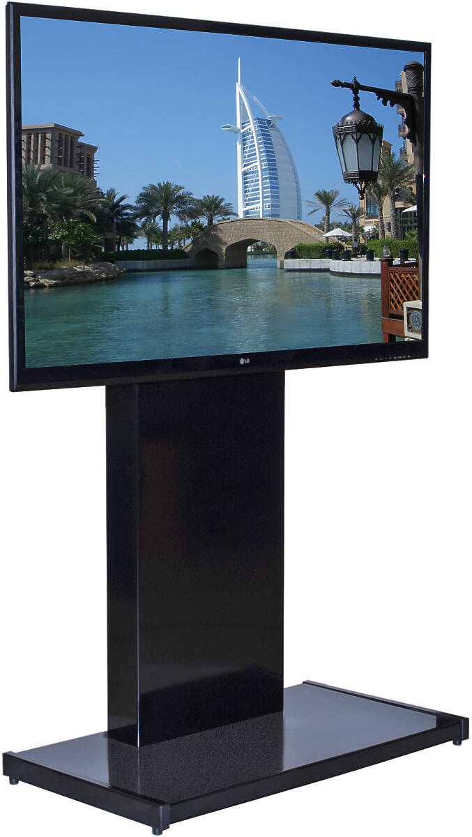 Its clean, stylish design offers a secure mobile or static platform for single screens, enhancing interactive experiences and presentations.