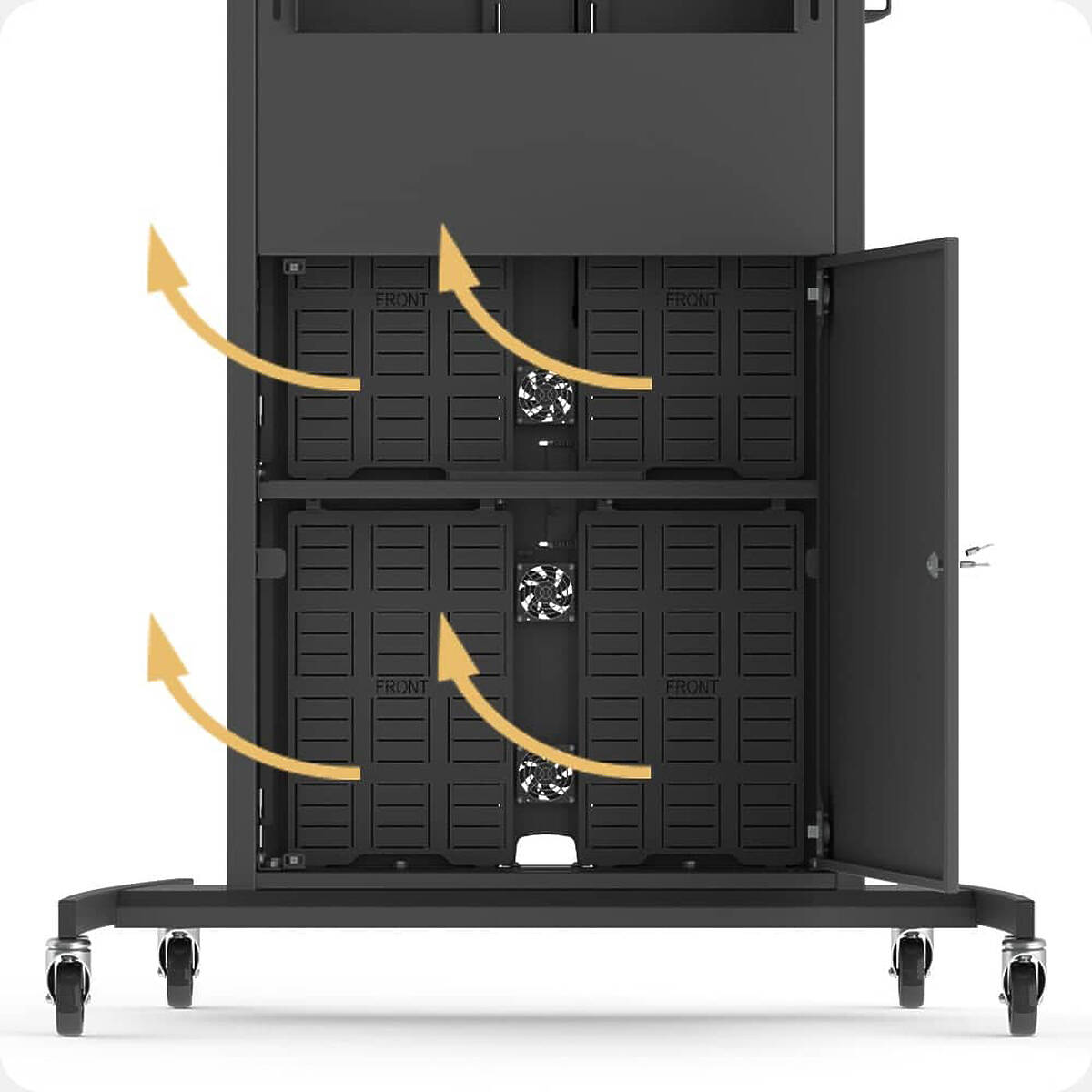 - Keeping Cool Under Pressure — Zonal air circulation helps to maintain airflow around your kit, ensuring uninterrupted AV/IT device performance even during peak usage.