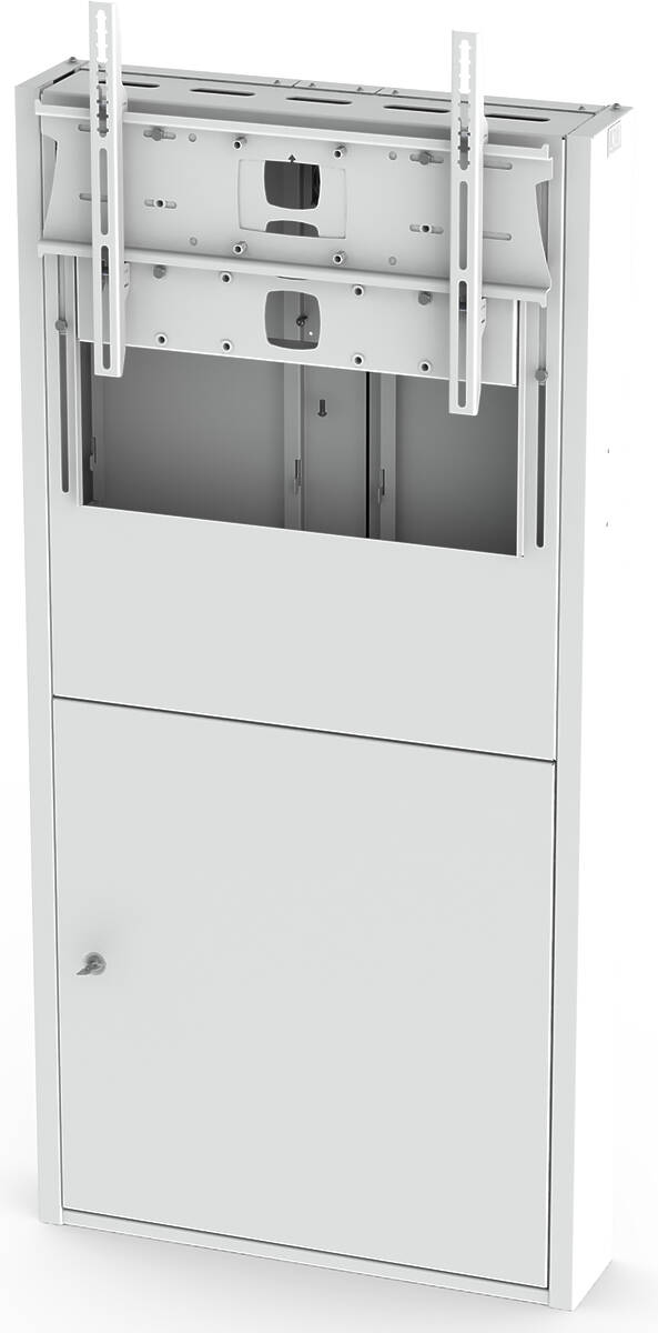 - Secure, Accessible Storage — Integrated lockable cabinet that stores four removable AV equipment trays that are ideal for housing PSU’s, transcoders, smallform PC’s and more.