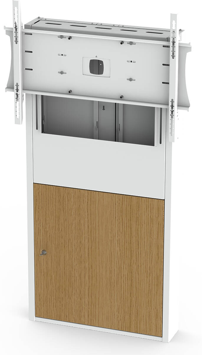 - Secure, Accessible Storage — Integrated lockable cabinet that stores four removable AV equipment trays that are ideal for housing PSU’s, transcoders, smallform PC’s and more.