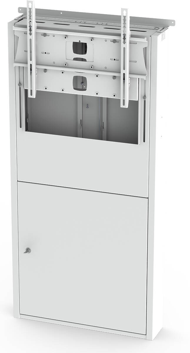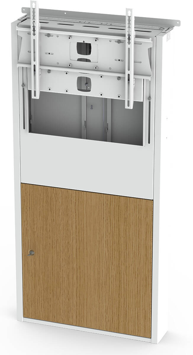 - Lockable storage within cabinet — including 4× removable AV vertical equipment trays (310w x 488h mm each)