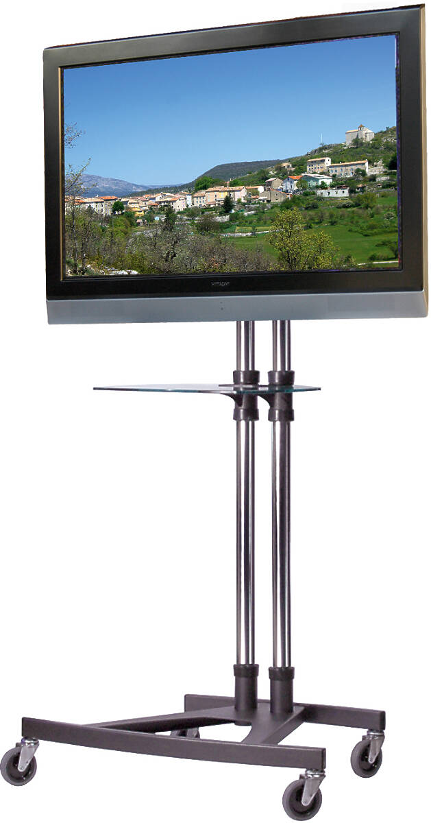 Our Unicol VS1000 kit provides a complete, modular large monitor trolley with everything you need to make your AV mobile. A PZX1 200×200–600×400 bracket and VP1 50×40cm steel shelf are included along with the stylish Scimitar base for stability.