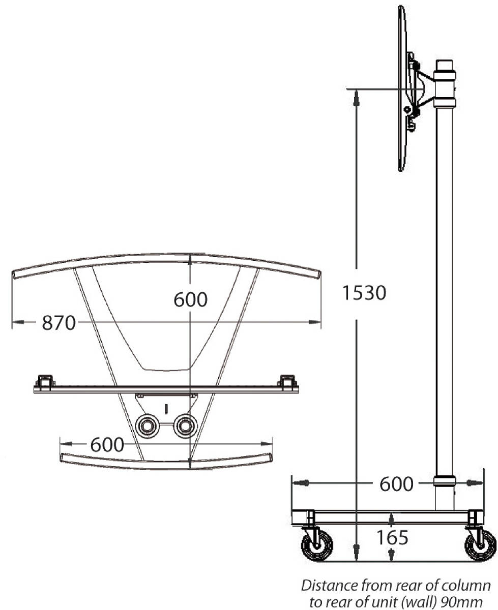| 1 × Unicol VSS | VS1000 Scimitar Un-braked Wheeled Twin Column Monitor Trolley Base (110mm Column Centres) |