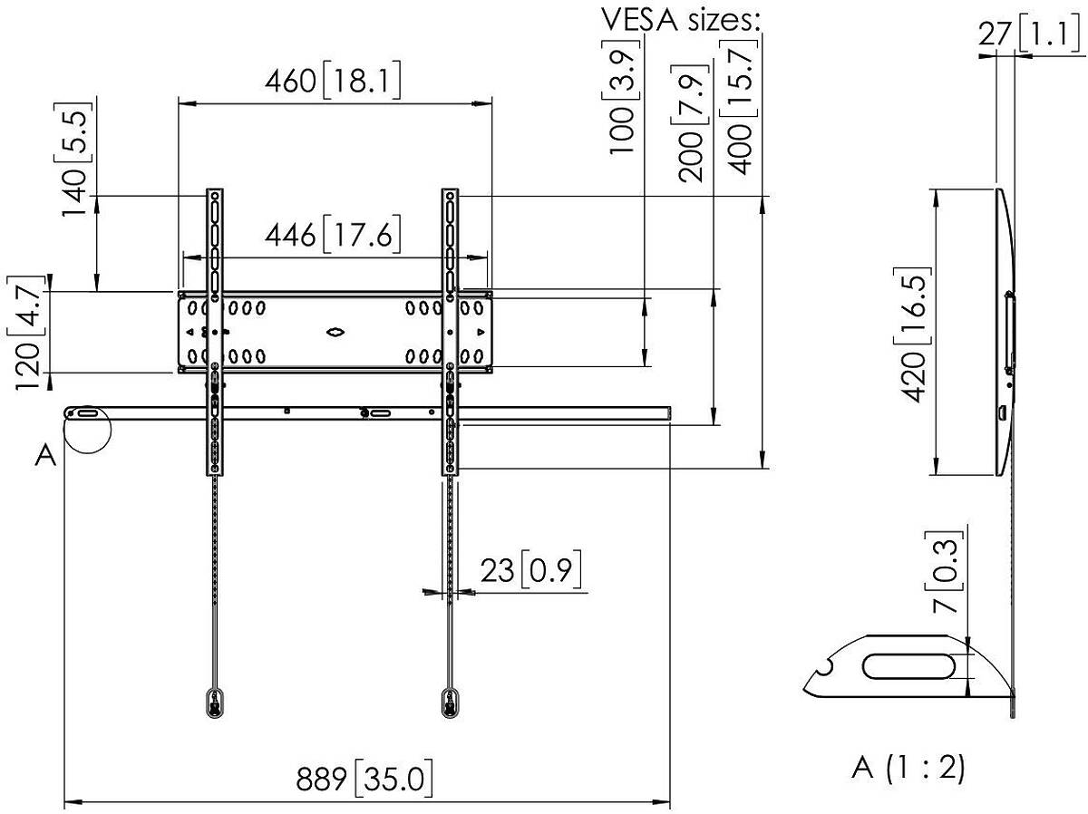 Designed to fit VESA measurements 100×100, 200×100, 200×200, 300×200, 400×200, 300×300, 400×300 and 400×400.