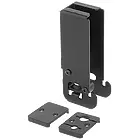 Retractor modules can be mounted vertically for ease of installation next to a table leg or desktop support. For horizontal mounting applications such as under a tabletop or other flat surface, an optional mounting bracket is available. Each horizontal bracket holds up to three Retractor modules. For semi-permanent applications, AVEdge 100 enclosures also accommodate up to three Retractor cable retraction modules. The mounting bracket is included. Cable Cubby Series and select TouchLink enclosures support from three to nine Retractor modules, depending on the size of the enclosure. Optional mounting brackets may be required. The Retractor Filler Module is available to fill unused spaces in Retractor mounts. This Filler Module includes a Blank Cover Plate as well as a Cable Pass‑through Plate that accommodates stereo audio, network, or other cables. The Extron TMK 120 R Table Mount Kit for under-table mount installations is also available for installations where cutting a tabletop surface is not desirable