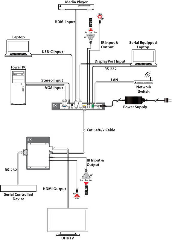 | Outputs | 1 × RJ45 HDBaseT HDMI & Propriety Data |