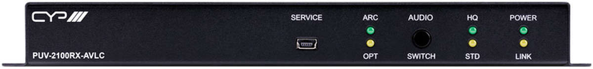 The CYP PUV-2100RX-AVLC is a HDBaseT 2.0 Receiver capable of receiving 4K video with HDR and high bitrate audio over a single Cat.6a/7 cable at distances of up to 100m (328 feet). This Receiver complies with the advanced HDCP 2.2 and HDMI 2.0 standards, as well as supporting the legacy HDCP 1.x and HDMI 1.x standards. Despite HDBaseT's 10.2Gbps bandwidth limitation, 4K UHD HDMI video sources, up to and including 4K@60Hz (4:4:4, 8-bit) as well as 10/12-bit sources with HDR, are able to be received and processed using AVLC (Adaptive Visually Lossless Compression) technology when connected to a compatible AVLC Transmitter or the OUTX-2100-AVLC Matrix Board. This receiver can also pass RS-232, IR, Ethernet, and multiple audio streams across the same cable that carries the video signal.
