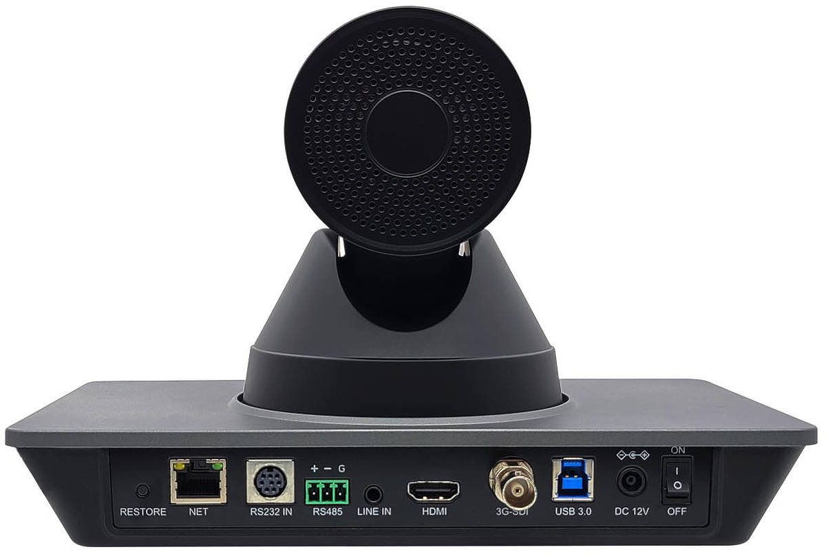 - Wide–angle image capture with advanced PTZ control enables dynamic coverage of medium and large spaces, such as boardrooms, classrooms, and auditoriums