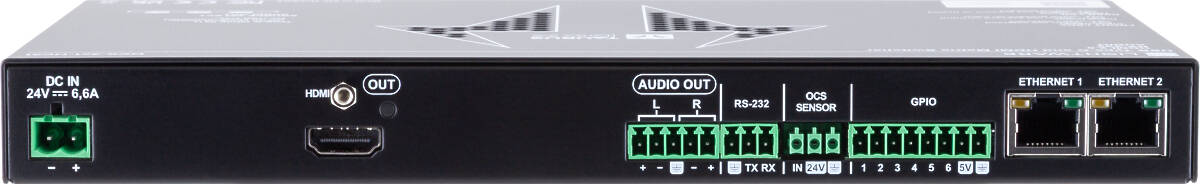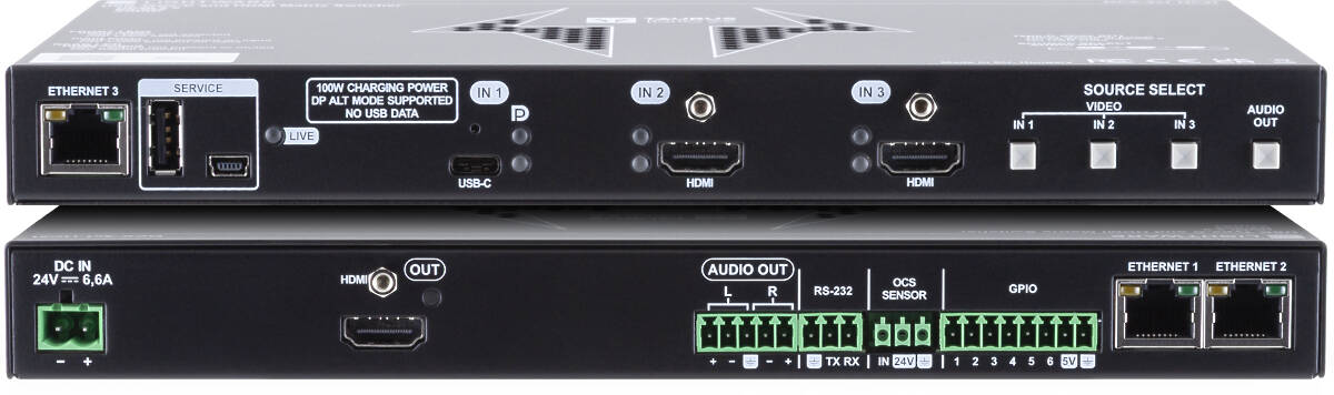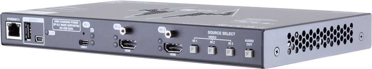 Automated room control features are also included through GPIO ports, besides RS-232 and occupancy sensor connectivity, and the switcher also thrives when it comes to audio capabilities, offering analogue audio de-embedding.
