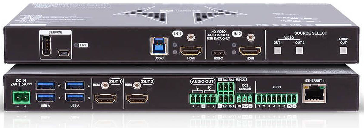The UCX-2x2-H40 universal matrix switcher enhances and extends the possibilities of a meeting room and allows meeting participants to easily use their own devices such as laptops, and preferred video conference platforms while also to utilize the available assets of the meeting space, just like the HDMI displays, room cameras and other USB peripherals.