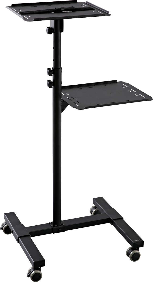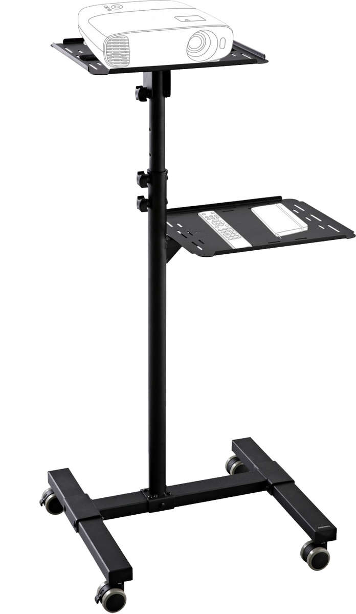 Height adjustable twin-shelf projector tilting projection trolley finished in grey