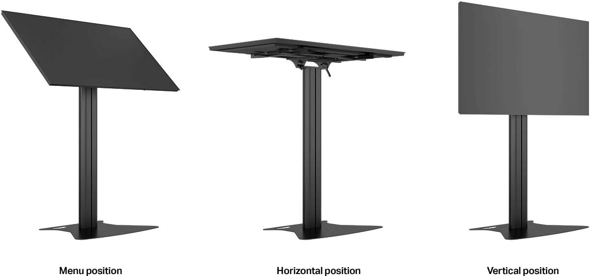 The M Public Display Stand 110 Tilt & Table Floorbase accommodates screens up to 55″ or Max Load 90KG and is an excellent choice for touchscreens. Built to last with a light but robust frame, fast assembly and disassembly, and suitable for most environments.