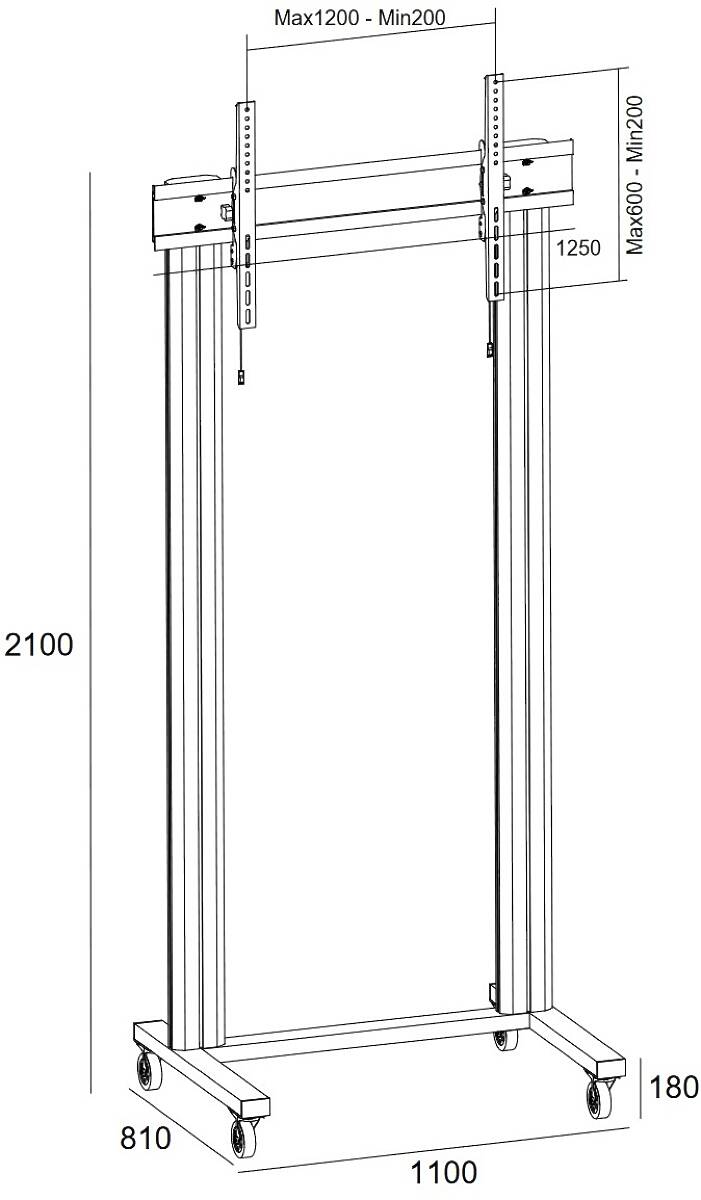 70–115″ / 125.00kg; VESA 200×200–1200×600; 200cm columns