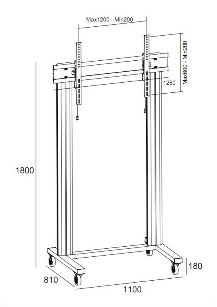 70–115″ / 125.00kg; VESA 200×200–1200×600; 200cm columns