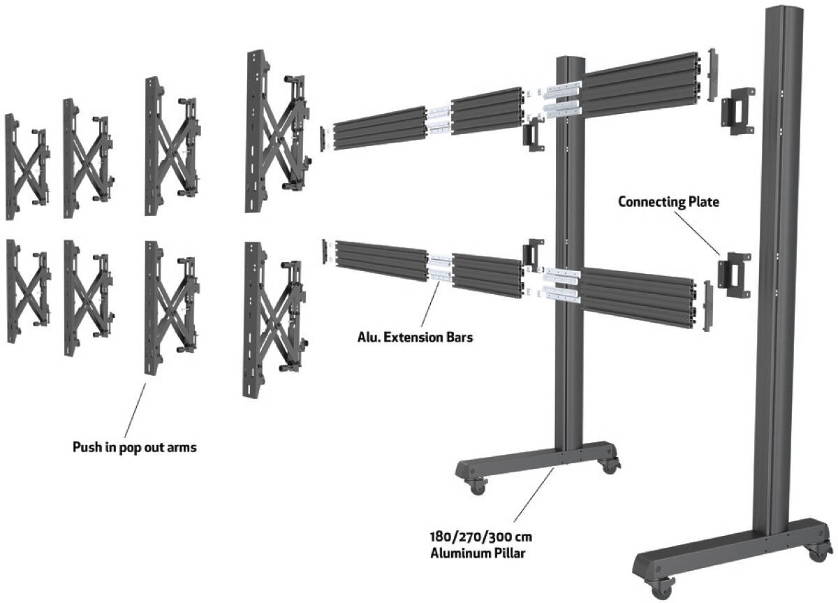 With its modular construction, Pro Series parts offer extensive possibilities to modify, update, and reconfigure a Pro Series installation. Combine these rail extension bars with your Pro Series setup to create new configurations and expand your digital signage solutions.