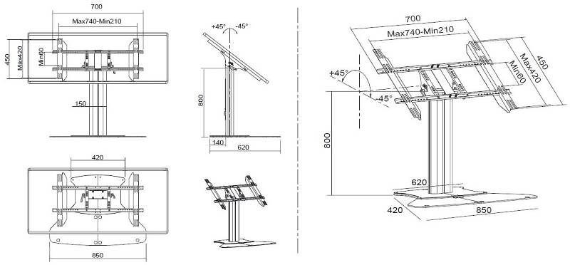 0–90° Tilting Low-Level Monitor Plinth Stand