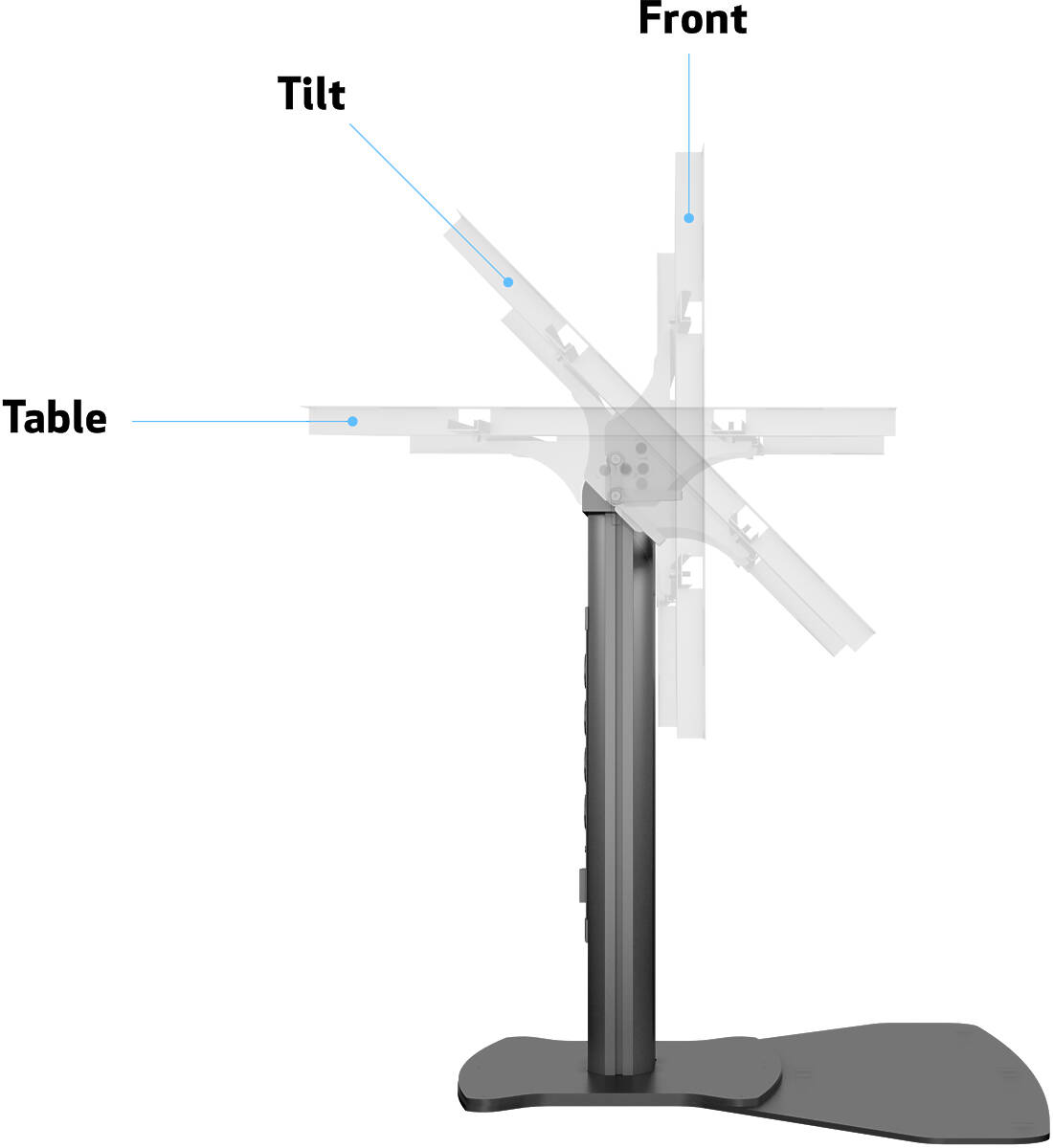 Place your new touchscreen as a table. Present your projects with the display tilted toward any viewer. Use the stand as a presenter for a product or interactive presenter. Make your presentations more interactive by providing new flexibility for a display or touch displays. With its simple to use tilt function, and easy movable transport, makes this the ideal solution for educational sector, tv studios and just about any company. The M Public Display Stand 80 HD Floorbase Single has multiple accessories available, as computer shelf, cable holder and other accessories.