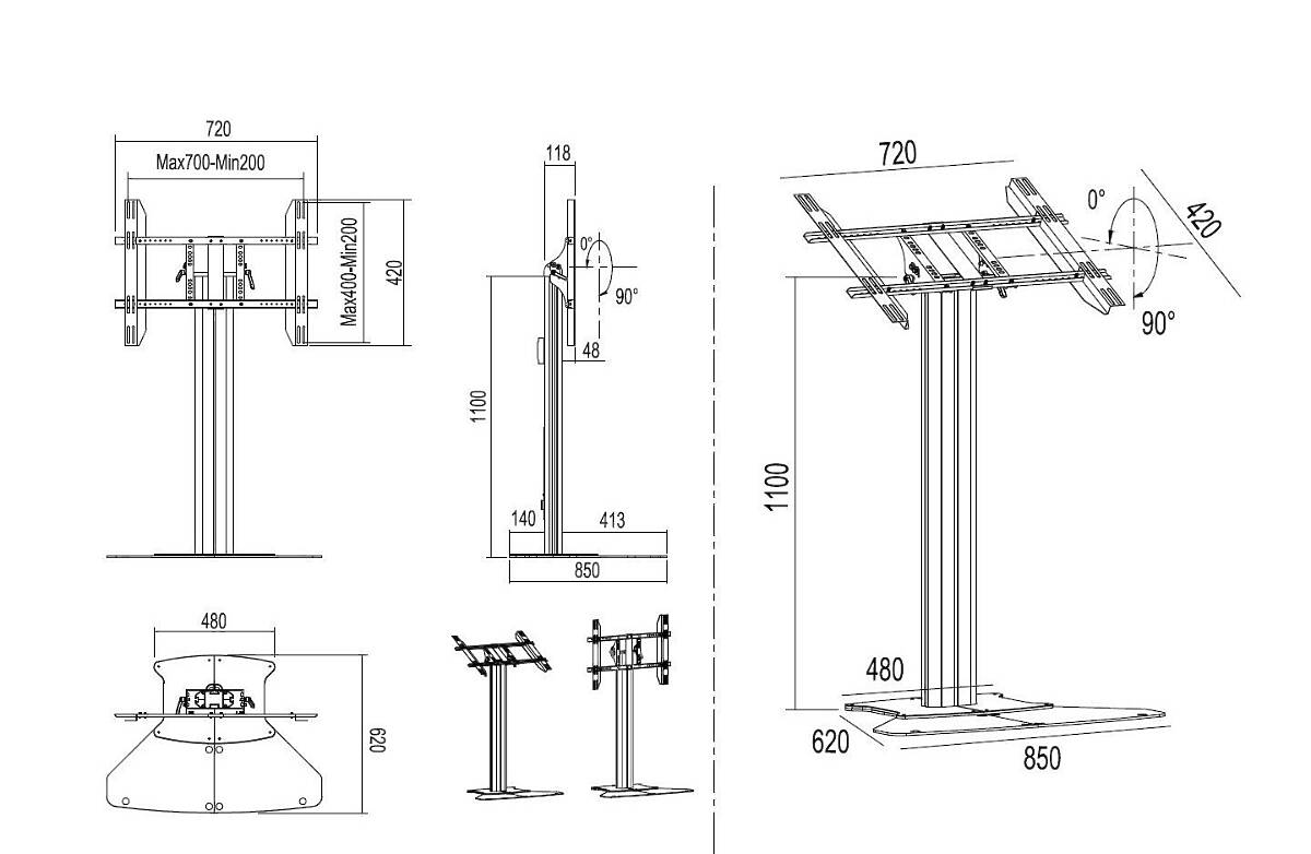 0–90° Tilting Low-Level Monitor Plinth Stand