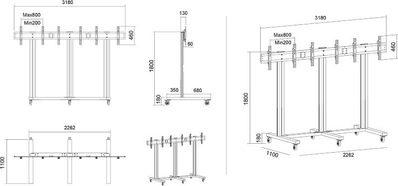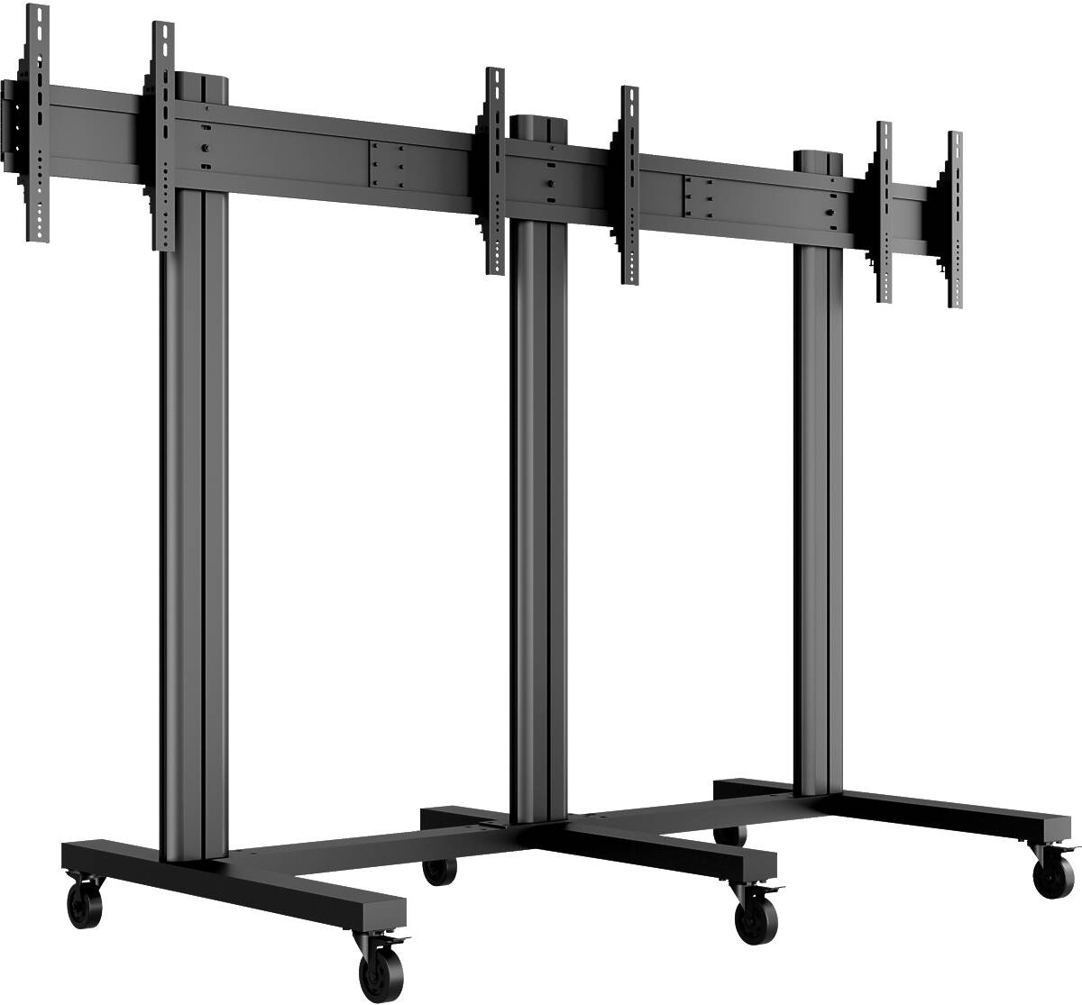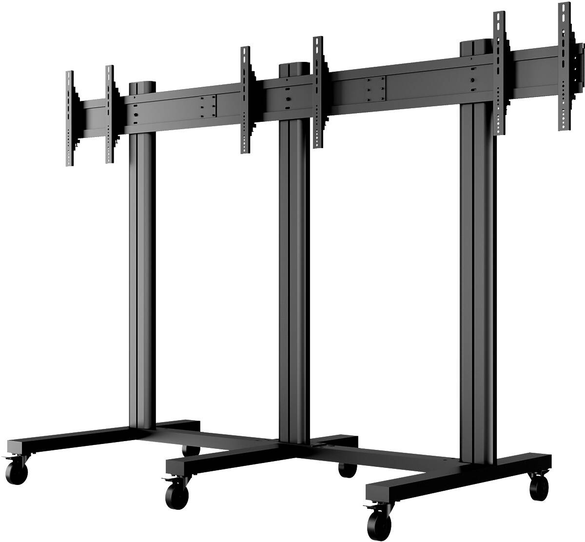 Constructed from durable aluminum with a 180cm high pillar, it offers excellent height adjustment options to optimize viewing angles for both seated and standing audiences. The integrated 220V power rail within each pillar simplifies cable management and power supply to all connected screens and peripherals. This mobility and modularity allow easy repositioning for temporary or permanent installations, with an optional floor mount base available for fixed setups.