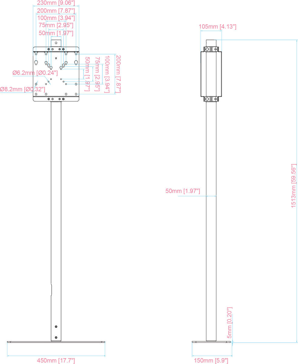 450.0mm width 1513.0mm height 150.0mm depth |