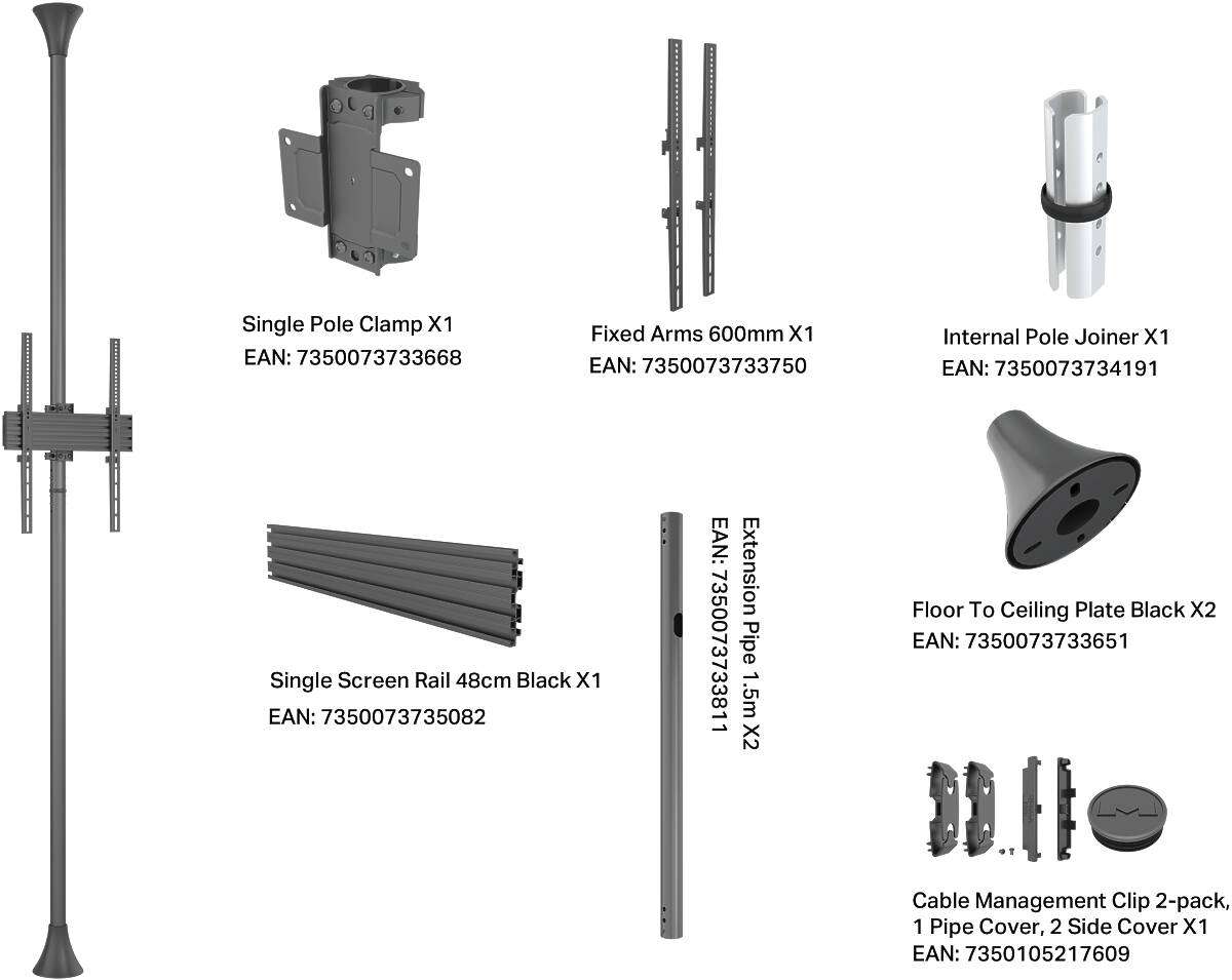 - Single-screen floor-to-ceiling mount for digital signage applications