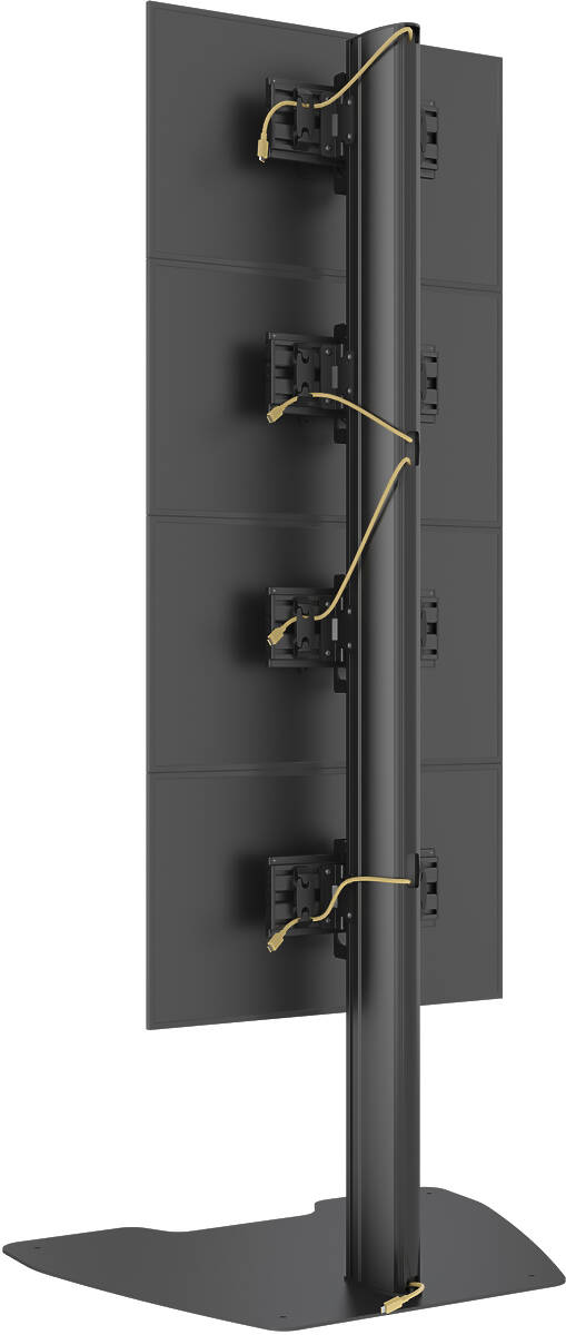 The MBFSC4U stand is fully modular – allowing users to mount displays side-by-side or stacked vertically. Aesthetic options include interchangeable black, brass, or chrome tubes, while an optional bracket makes wall integration possible. Quick to install and easy to maintain, it's engineered for both flexibility and long-term reliability.