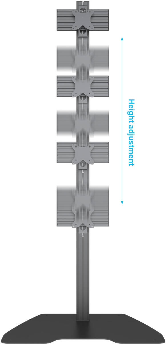 This 1.8 metre column stand features micro-adjustable mounting arms for precise screen positioning, compatible with VESA 75×75–100×100. Whether used in a fixed, tilted, portrait or landscape setup, the structure supports both ergonomic and visual precision. Built-in cable management ensures a clean, uncluttered presentation.