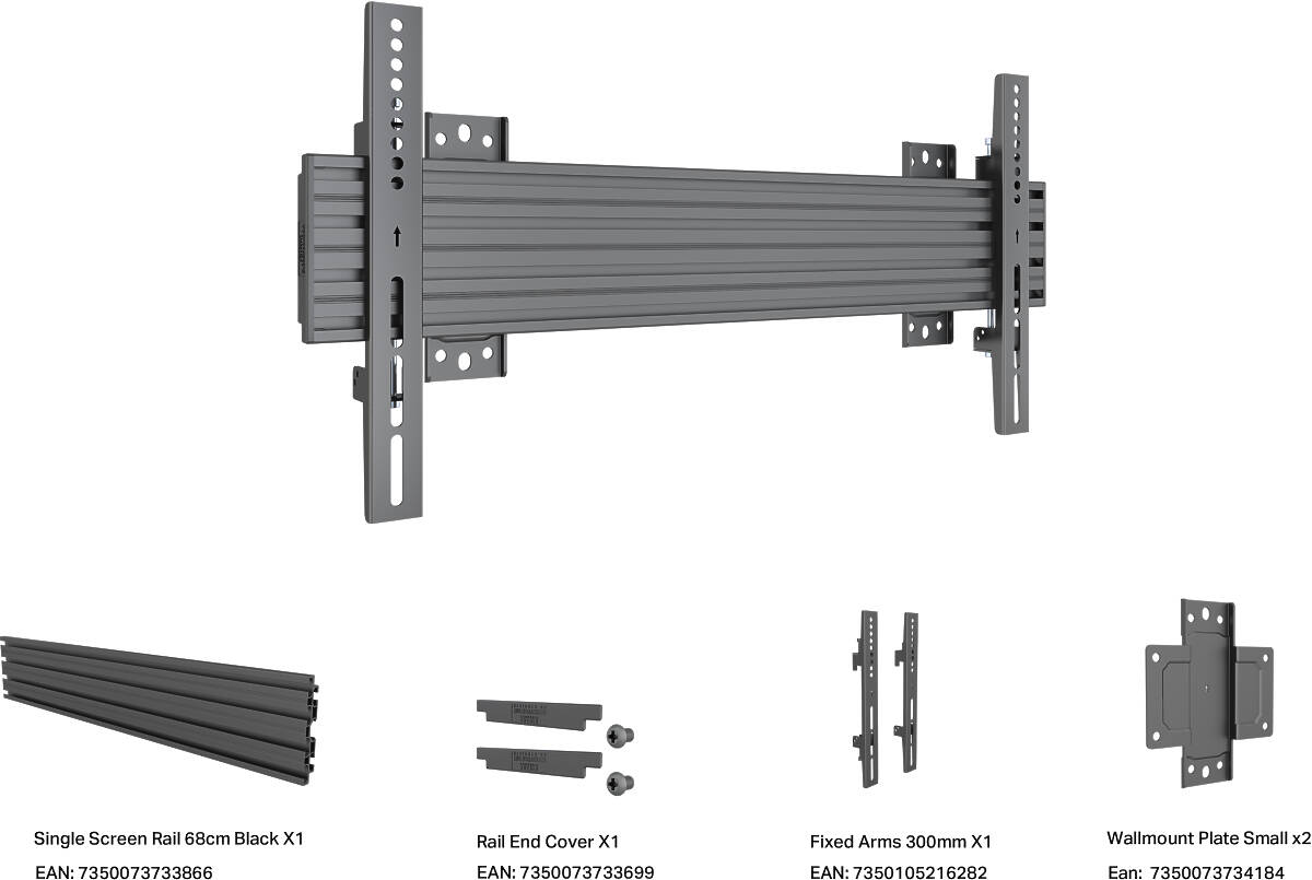 As part of the modular Pro Series, the MBSTH1U 600x300 Fixed offers exceptional flexibility with its precision-engineered aluminium rail system. Built-in cable management and Power Click tool-less mounting simplify installation and create a clean, professional finish. Its modularity allows for future upgrades, reconfiguration, or expansion, making it a long-term investment for AV integrators and facility managers.