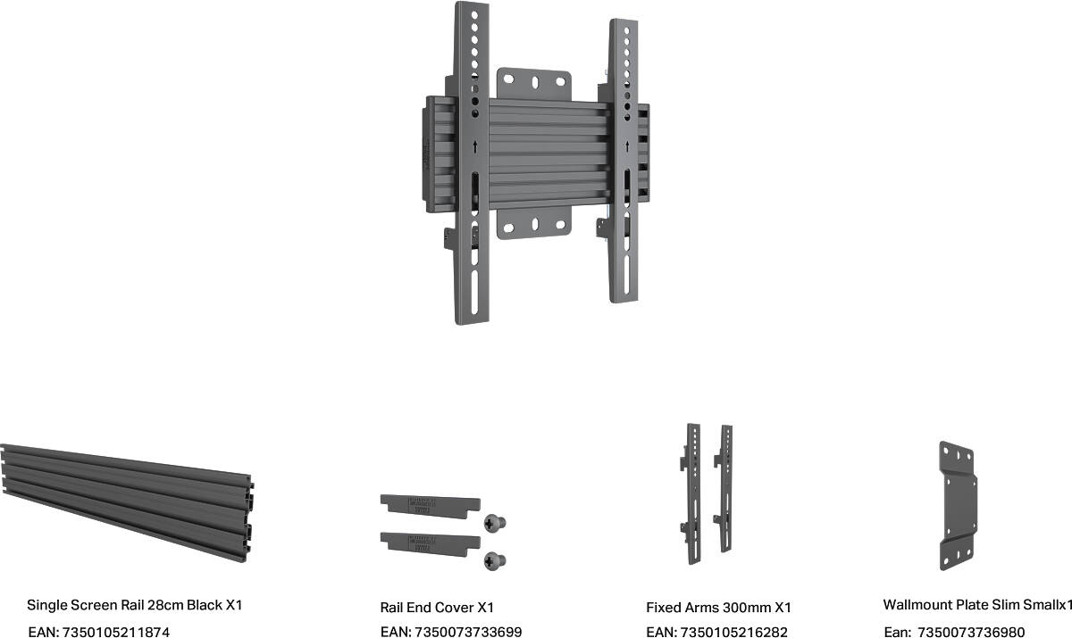 As part of the modular Pro Series, the MBW1U 300 Fixed offers exceptional flexibility with its precision-engineered aluminium rail system. Built-in cable management and Power Click tool-less mounting simplify installation and create a clean, professional finish. Its modularity allows for future upgrades, reconfiguration, or expansion, making it a long-term investment for AV integrators and facility managers.
