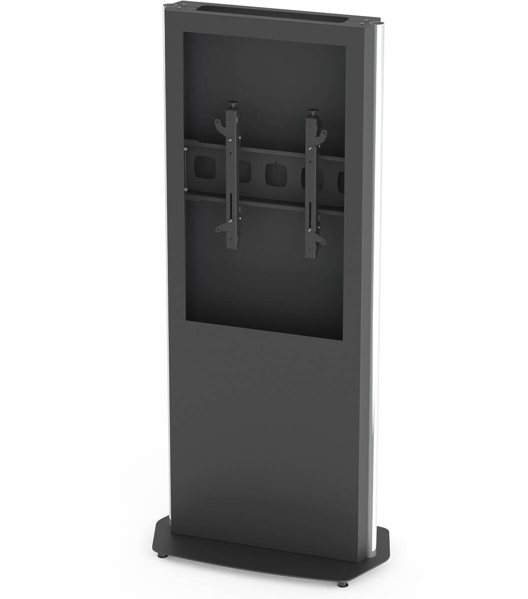- Freestanding, bolt-down and floor-to-ceiling configurations available in either kiosk (open lower section) or totem (enclosed lower section).