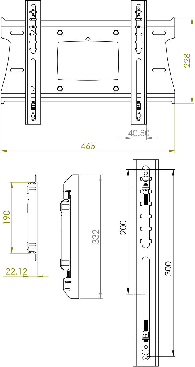 Designed to fit VESA measurements 100×100, 200×100, 200×200, 300×200 and 400×200.