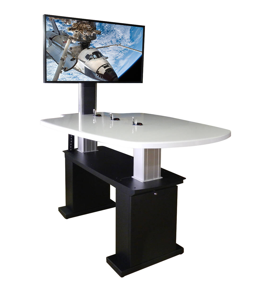 Both designs come with ample capacity and connectivity for cabling, codec and integration with other systems, all accessible through a cable well and locking door. Built in 4-way power socket comes as standard.