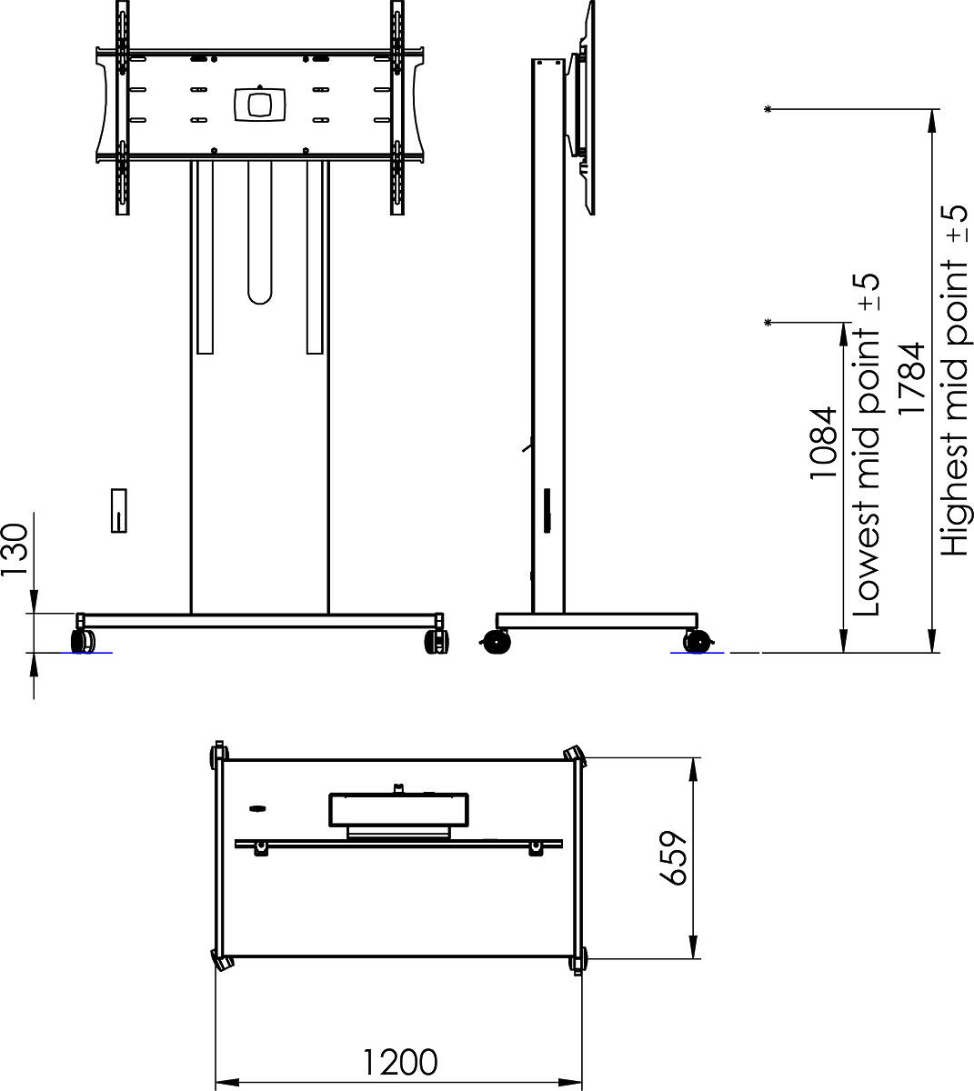 - Screen Centre Height: 1084 to 1784mm