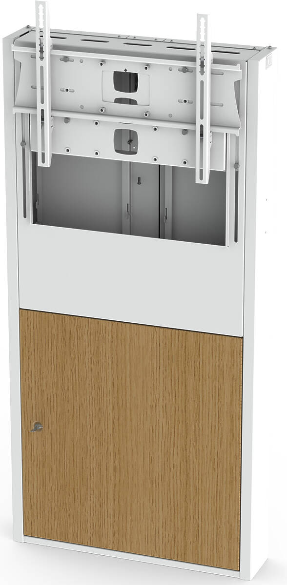 - Secure, Accessible Storage — Integrated lockable cabinet that stores four removable AV equipment trays that are ideal for housing PSU’s, transcoders, smallform PC’s and more.