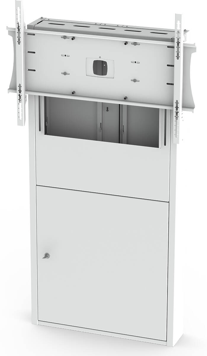 - Secure, Accessible Storage — Integrated lockable cabinet that stores four removable AV equipment trays that are ideal for housing PSU’s, transcoders, smallform PC’s and more.