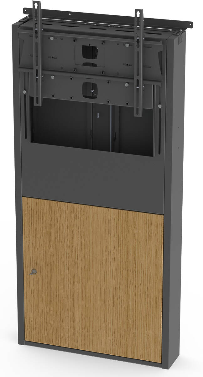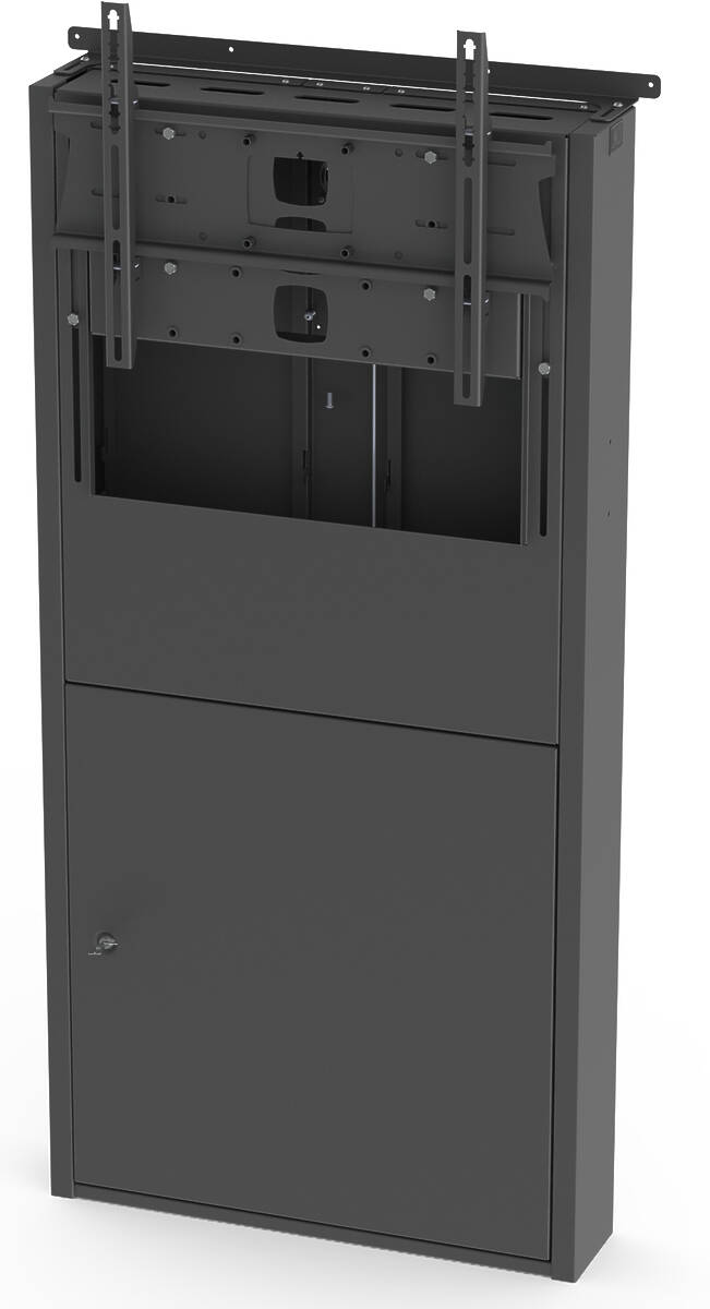 - Lockable storage within cabinet — including 4× removable AV vertical equipment trays (310w x 488h mm each)