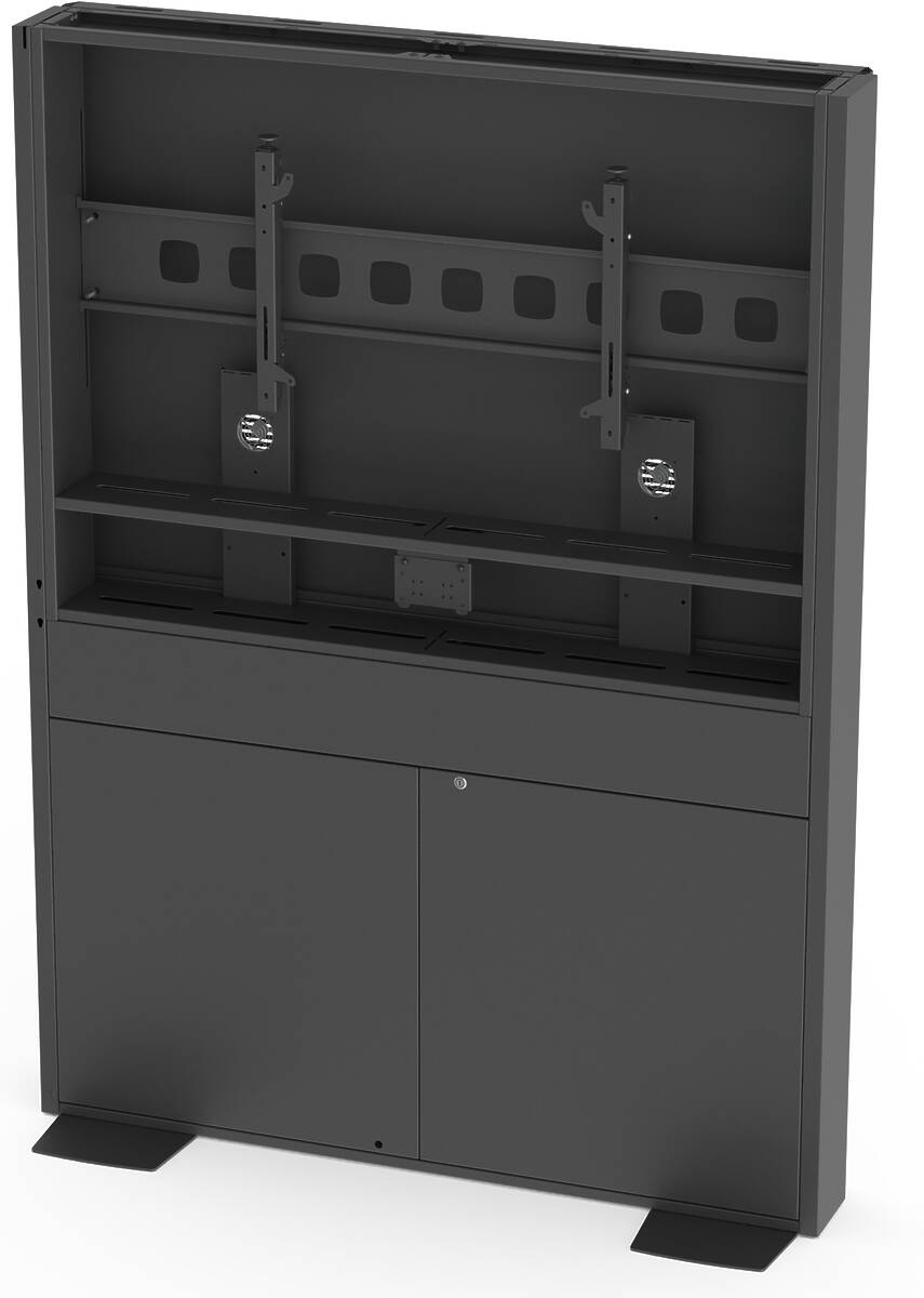 - Ample storage within cabinet, including 4× slotted removable AV trays (310w × 488h mm each).