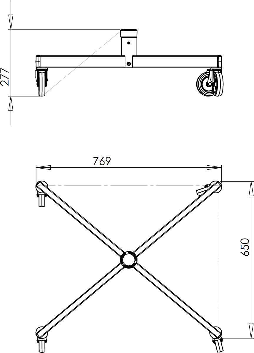 The T1B heavy duty single column base provides a 770x650mm footprint with 10cm rubber tyre castors to allow you to move your solution from room to room.