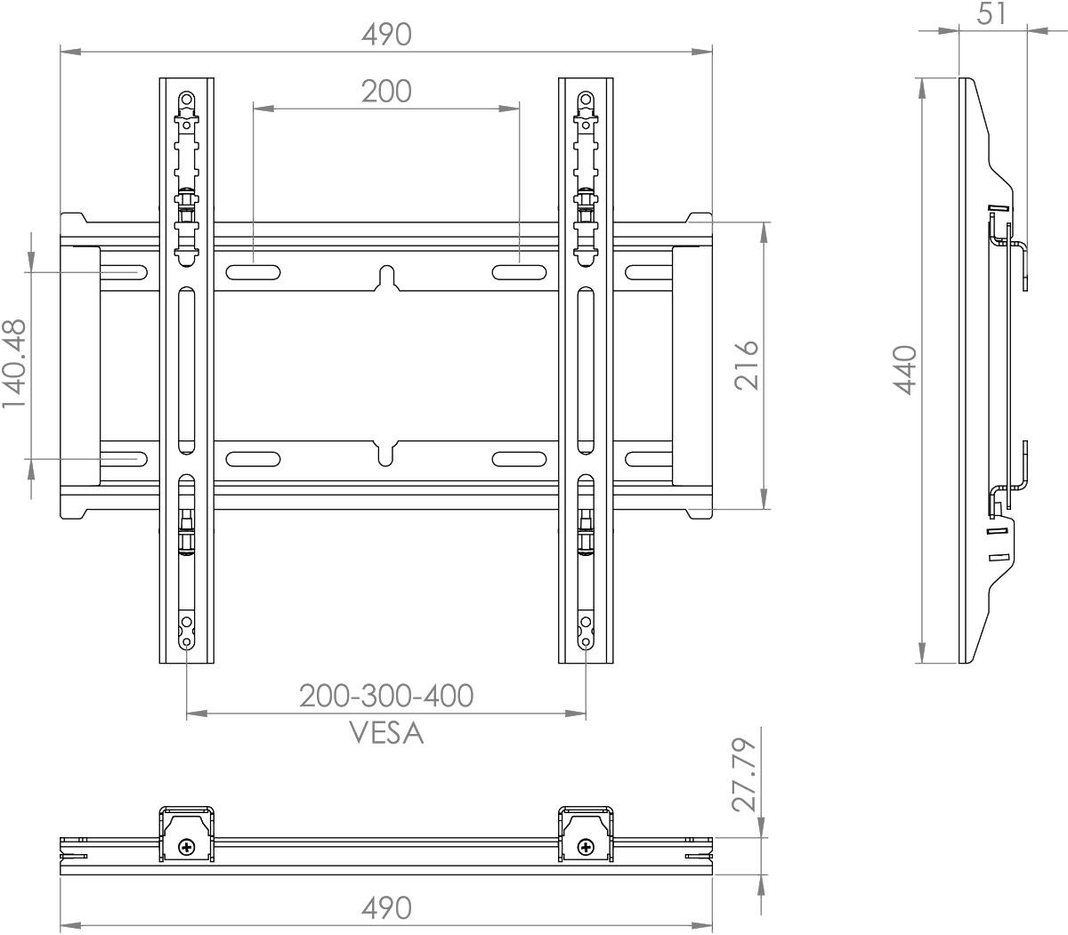 40–57″ / Max 40kg; VESA 200×200–400×400; Non-Tilt
